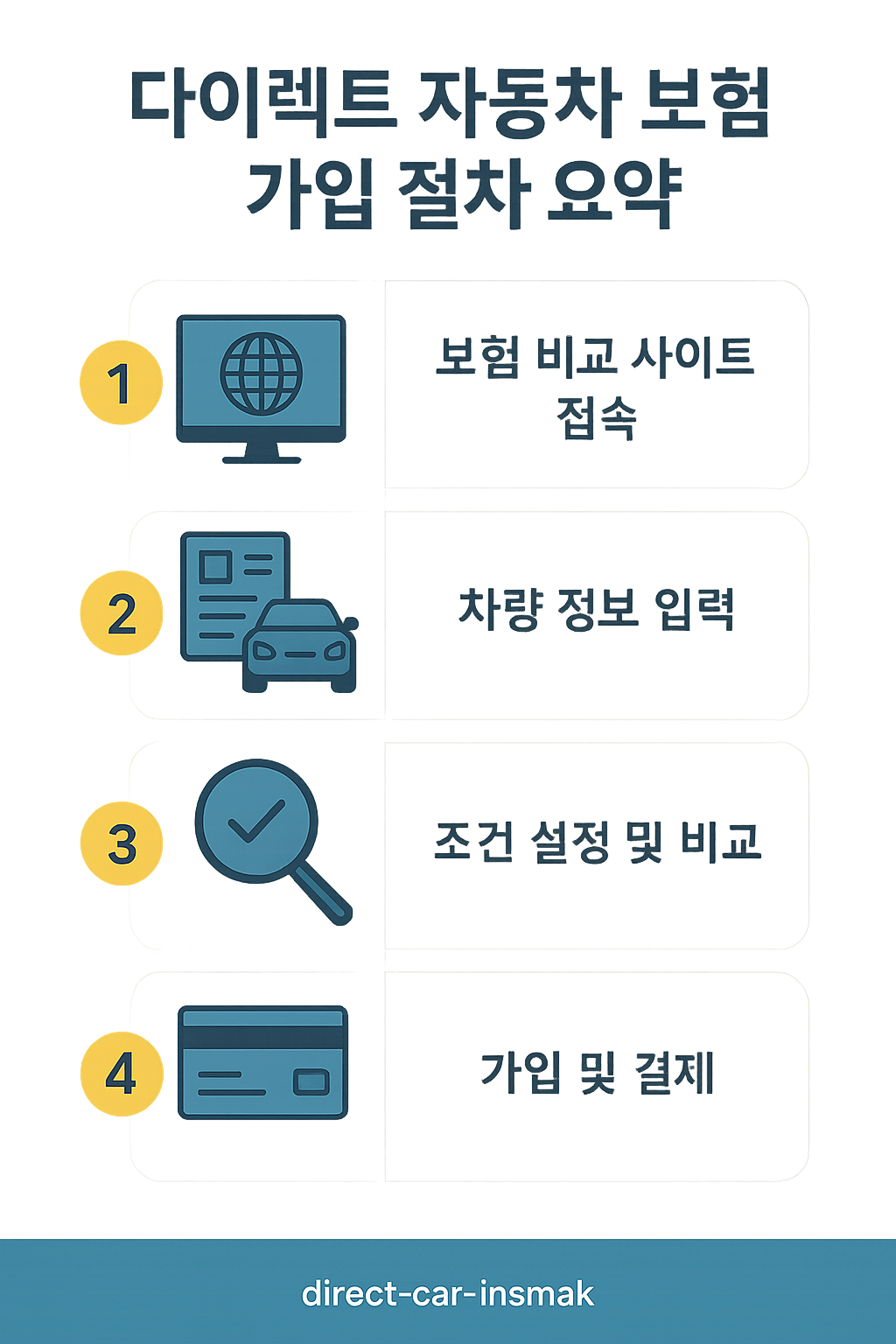 다이렉트 자동차 보험은 다음과 같은 순서로 가입합니다.📌 가입 절차 요약